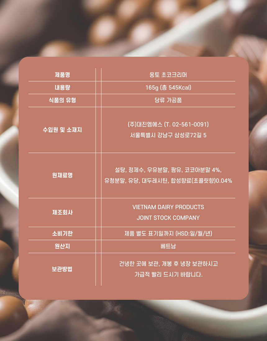 (옹토 초코크리머[코코아분말4%,합성향료초콜릿향 0.04% 함유])